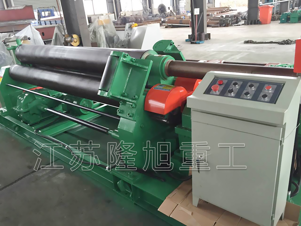 擋輪法的缺點是對工件一端的板邊有損傷。擋輪可繞自身軸旋轉,且能沿自身軸線上下竄動,擋輪表面淬火,這可減輕對板邊的損傷;在可能的情況下,將擋輪與上輥的距離拉大,既能減小擋輪與工件的作用力,也可增大對厚工件的作用力,這需要先預彎較長的板端。